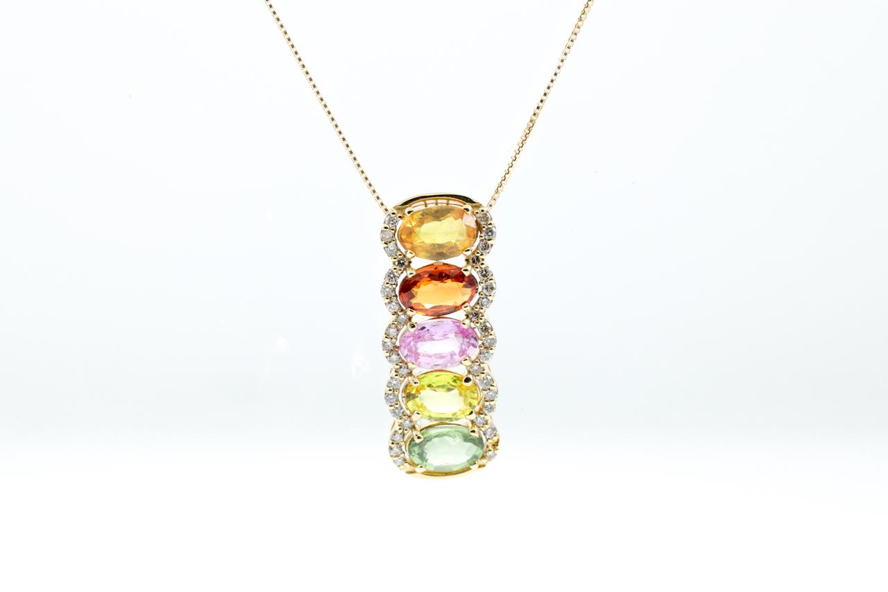 Multi-Colour Sapphire and Diamond Pendant