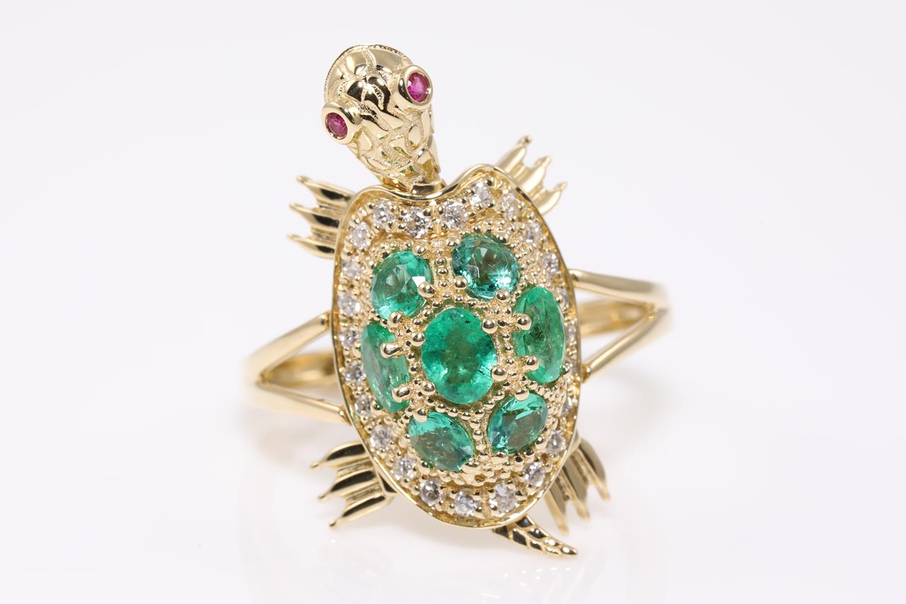 Emerald, Diamond and Ruby Turtle Ring