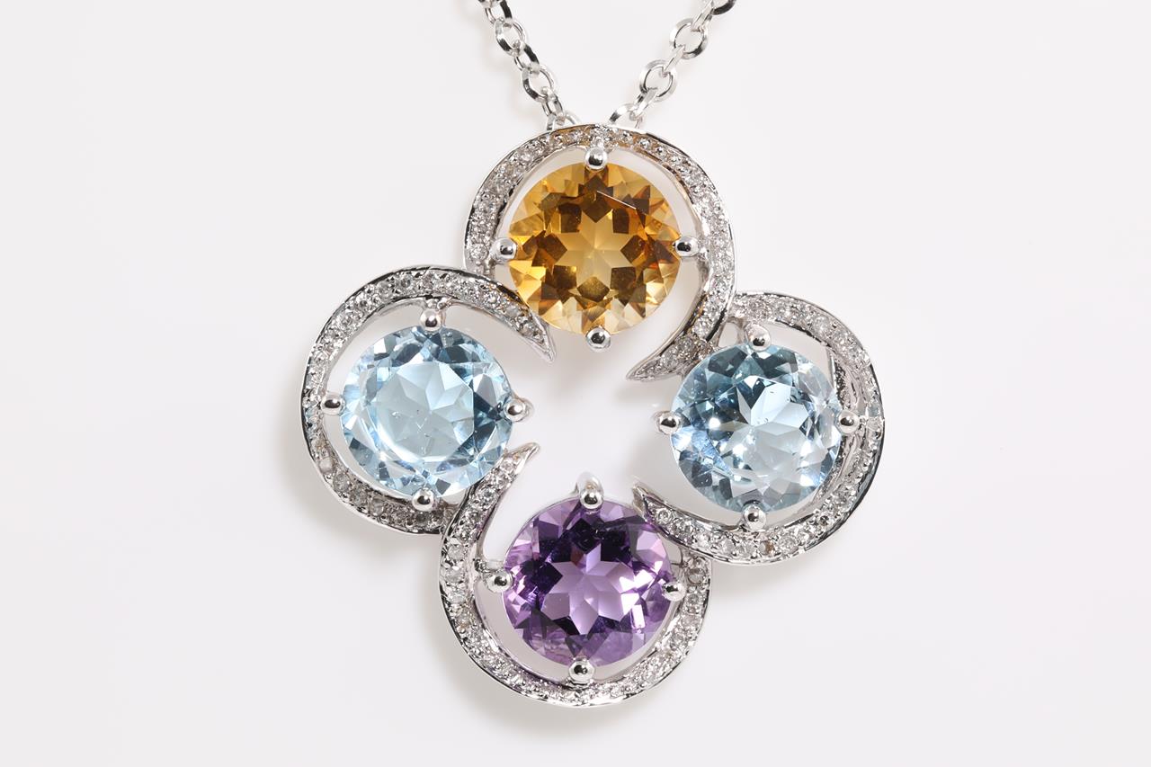 Topaz, Citrine, Amethyst & Diamond Pendant