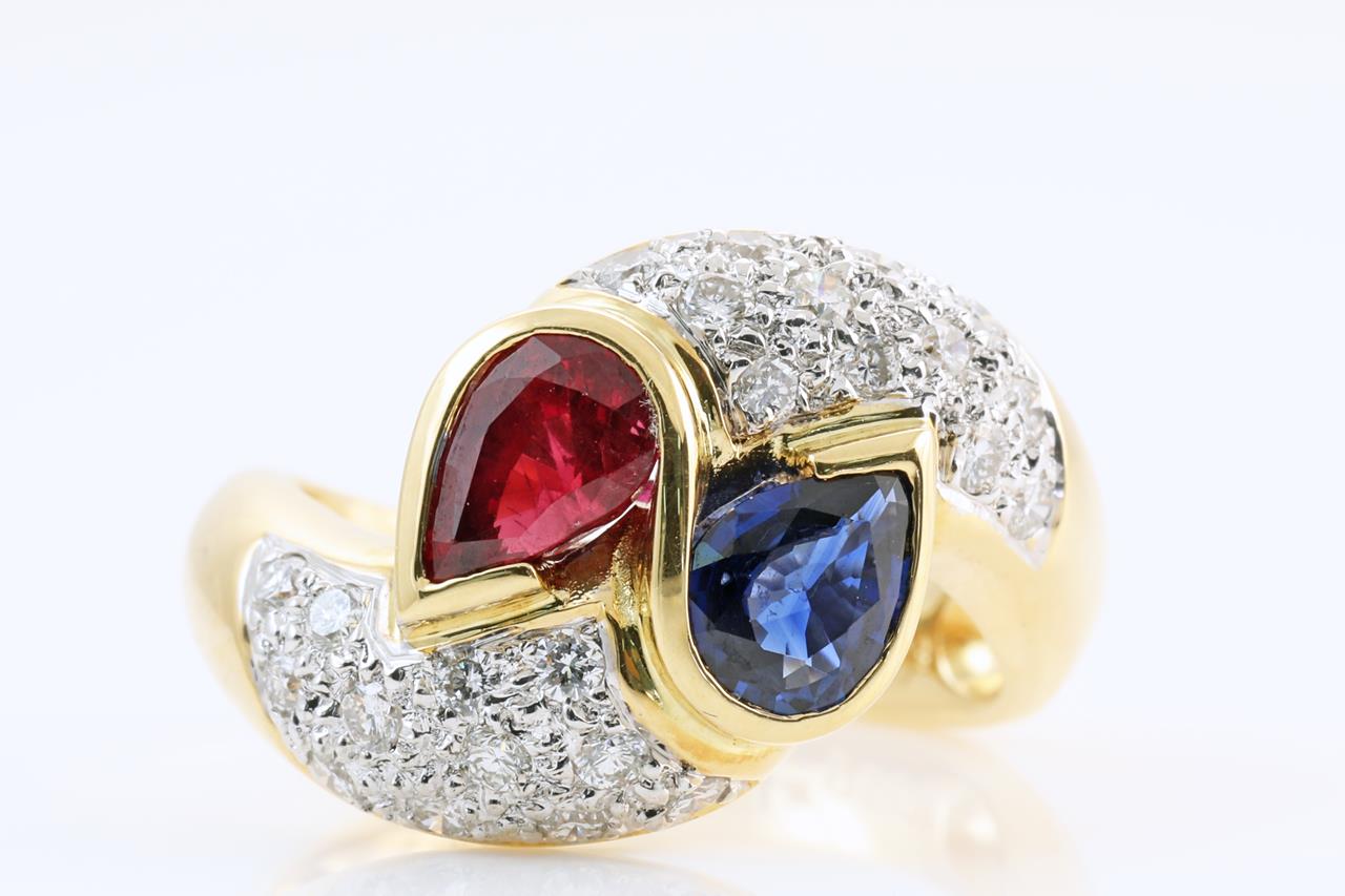 Ruby, Sapphire and Diamond Ring