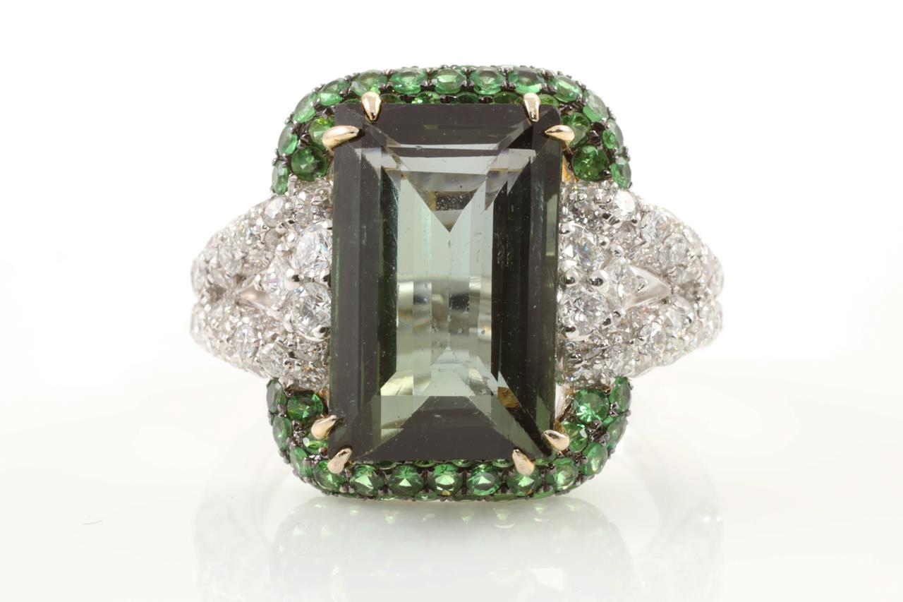 8.92ct Tourmaline, Tsavorite & Diamond Ring
