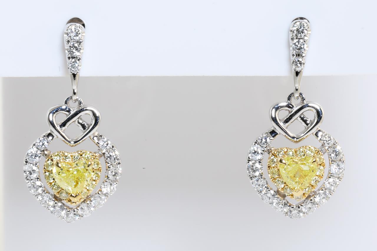 Fancy Yellow and White Diamond Heart Earrings