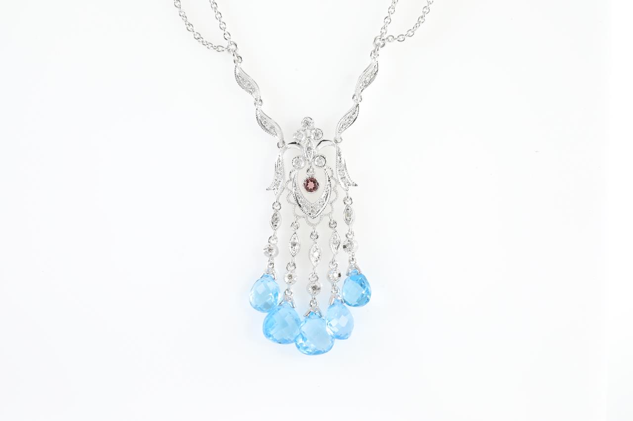 Topaz, Pink Tourmaline and Diamond Pendant