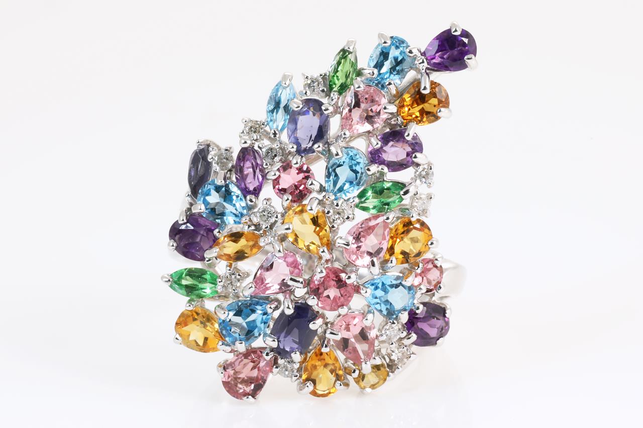 Mixed Gemstone and Diamond Ring
