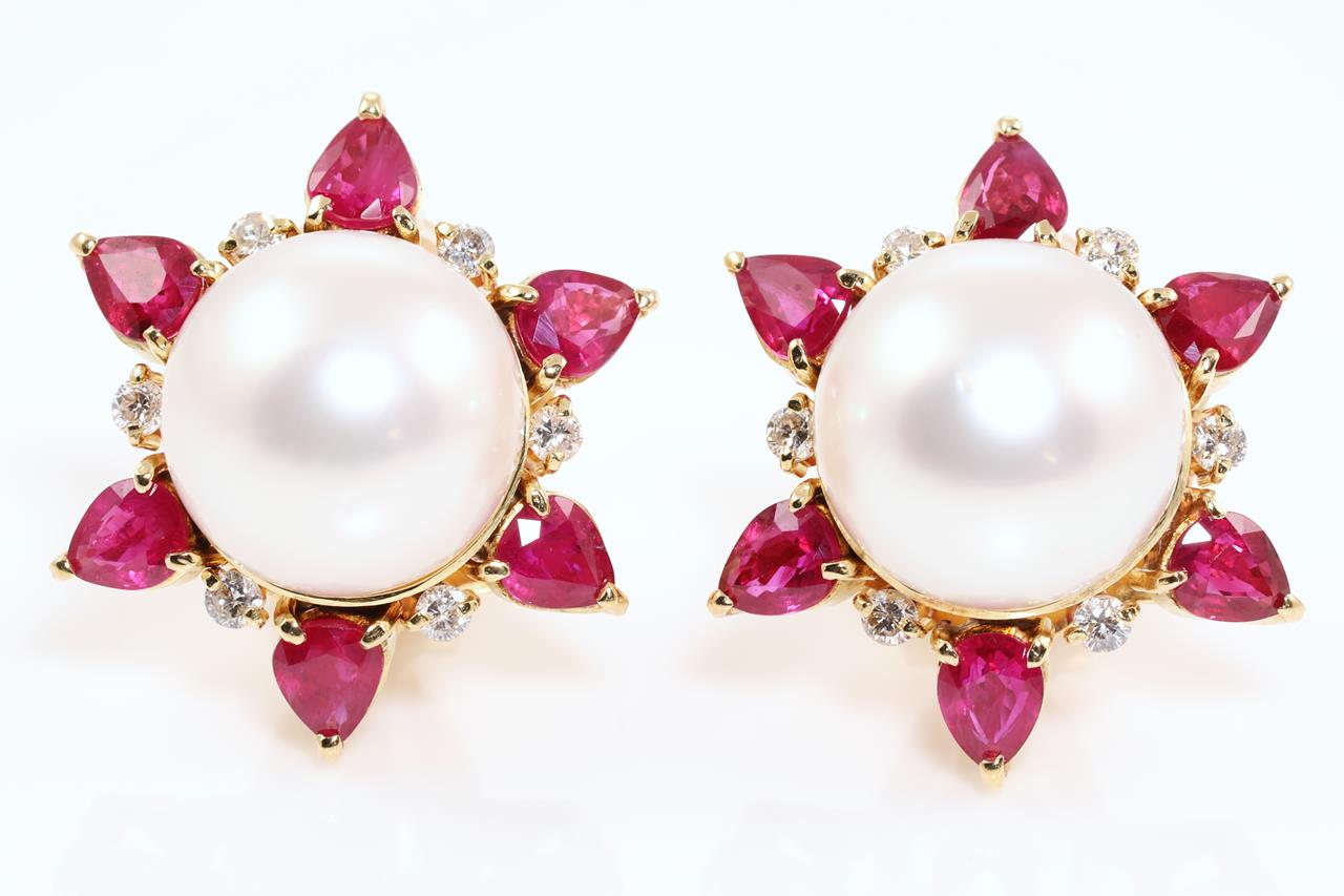 Pearl, Ruby & Diamond Earrings
