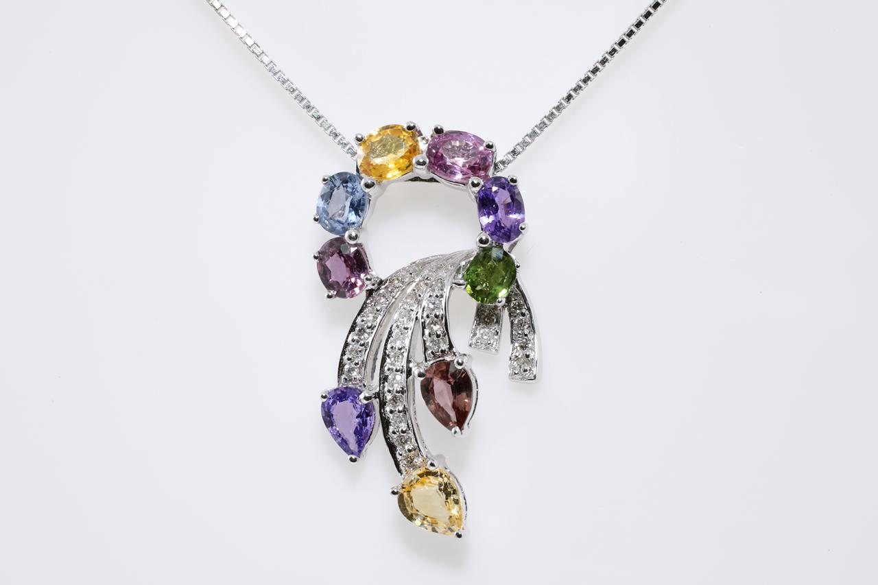 Multi-Colour Sapphire and Diamond Pendant