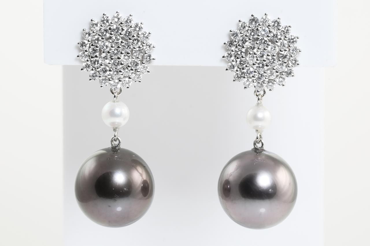 Tahitian Pearl and Diamond Earrings