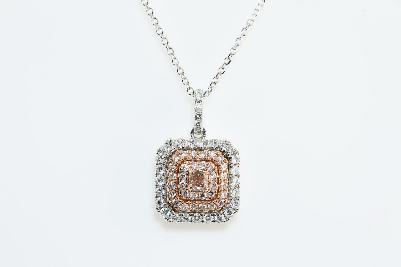 Pink and White Diamond Halo Pendant
