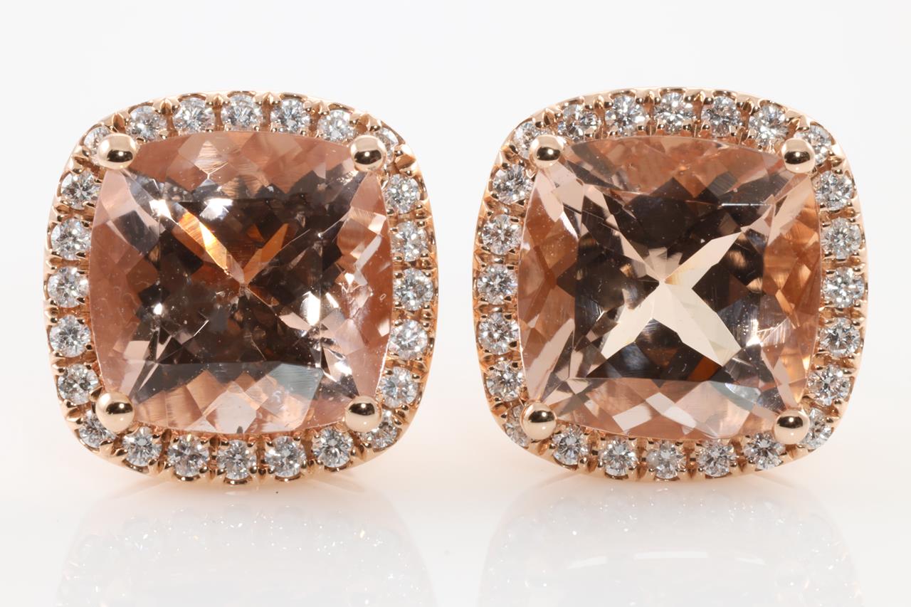 Morganite and Diamond Stud Earrings