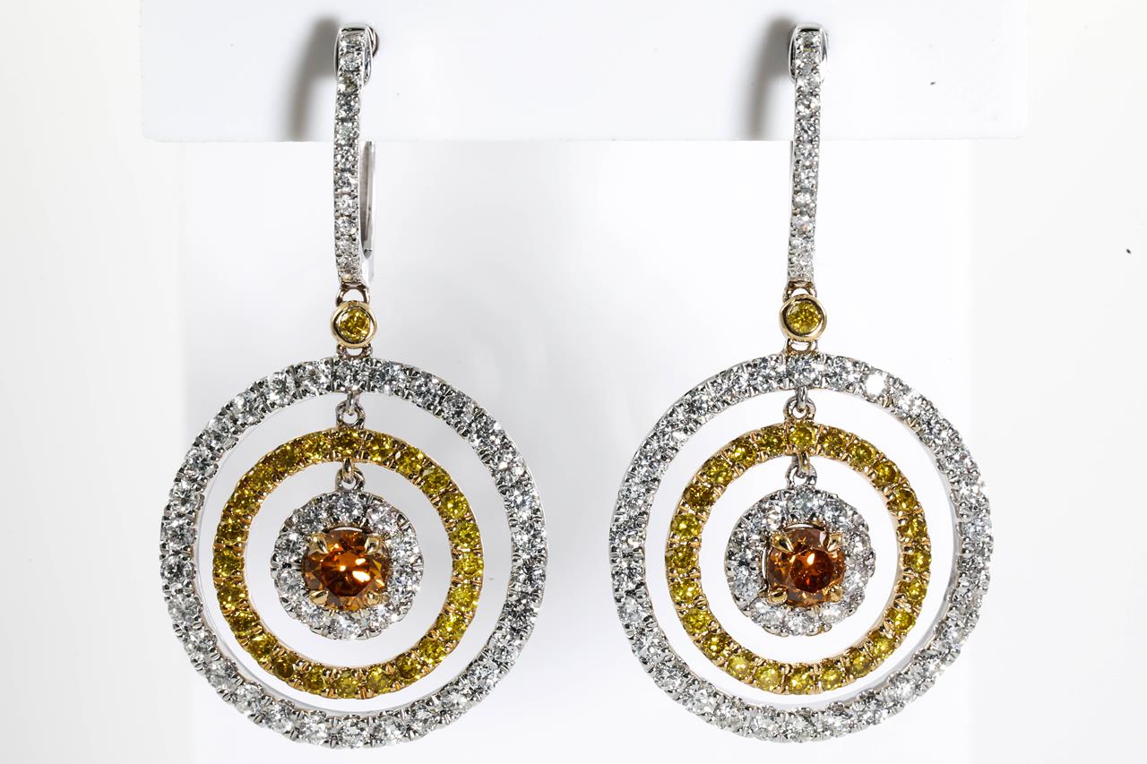 Orange, Yellow & White Diamond Earrings
