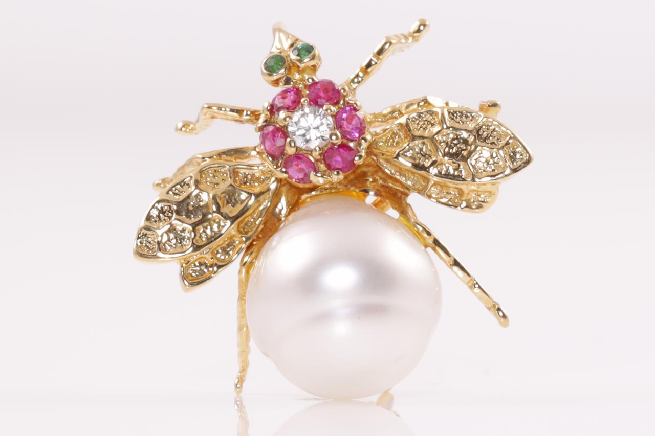 Pearl, Multi-Gemstone and Diamond Brooch/Pendant