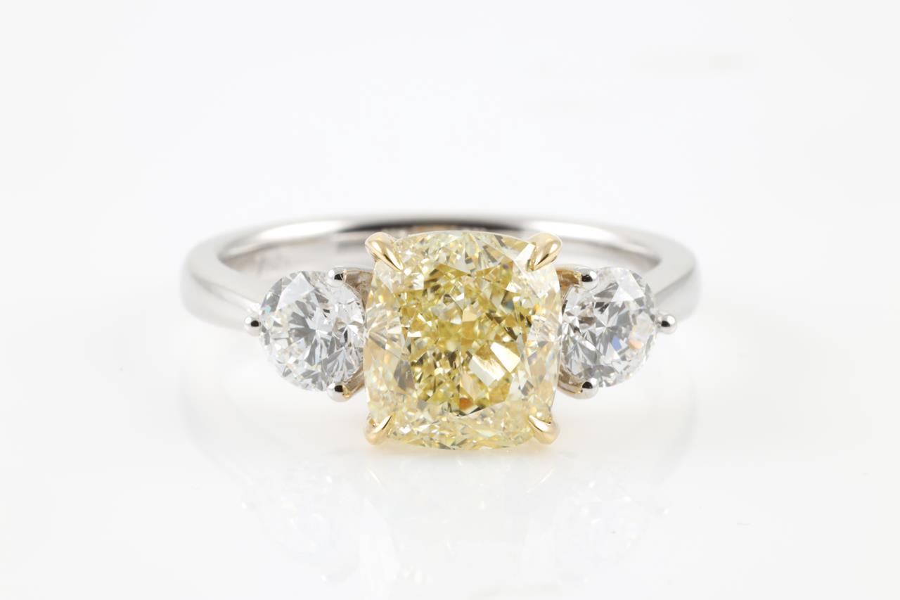 2.81ct Centre Fancy Yellow Trilogy Ring GIA