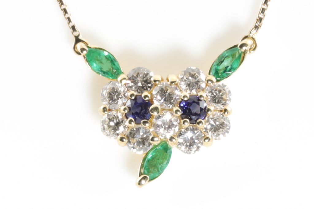 Emerald, Sapphire and Diamond Pendant