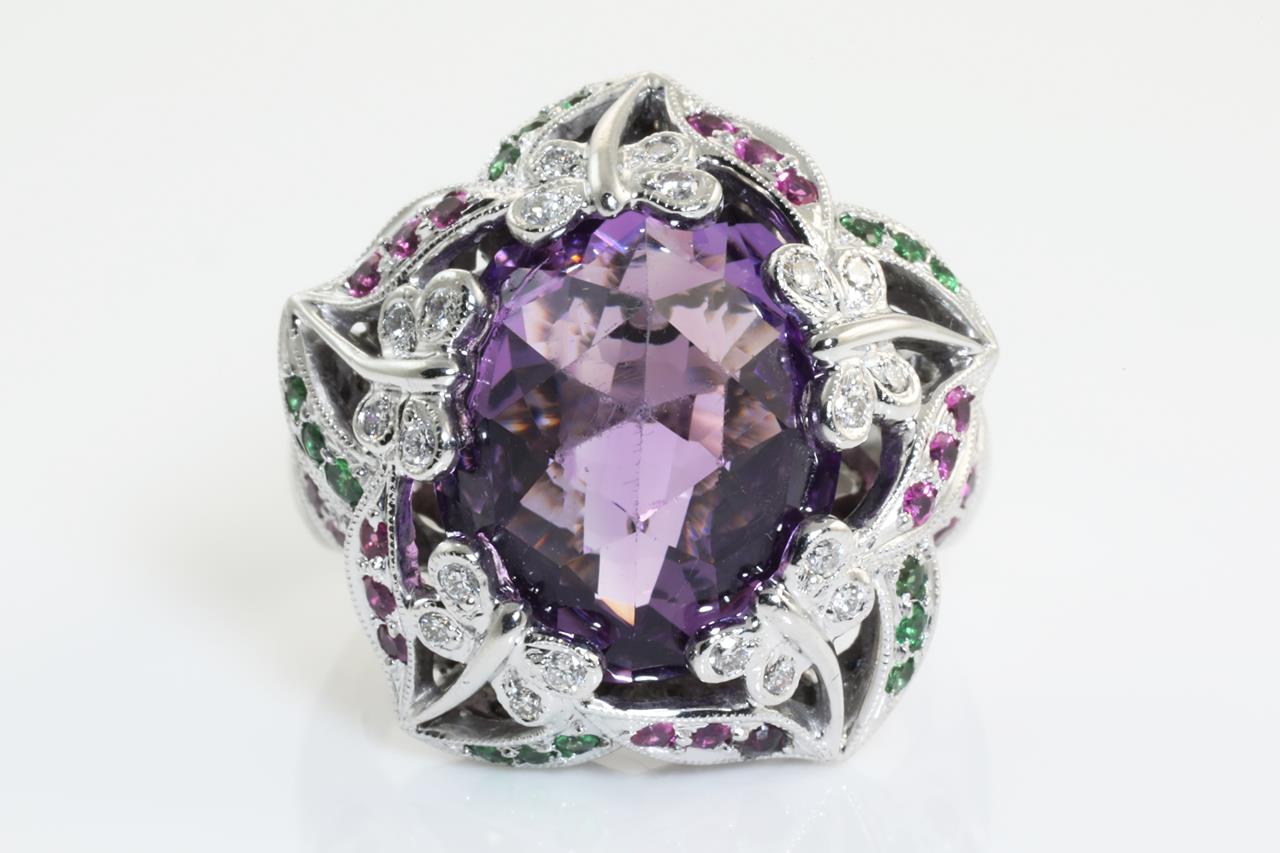 Amethyst, Mixed Gemstone and Diamond Ring