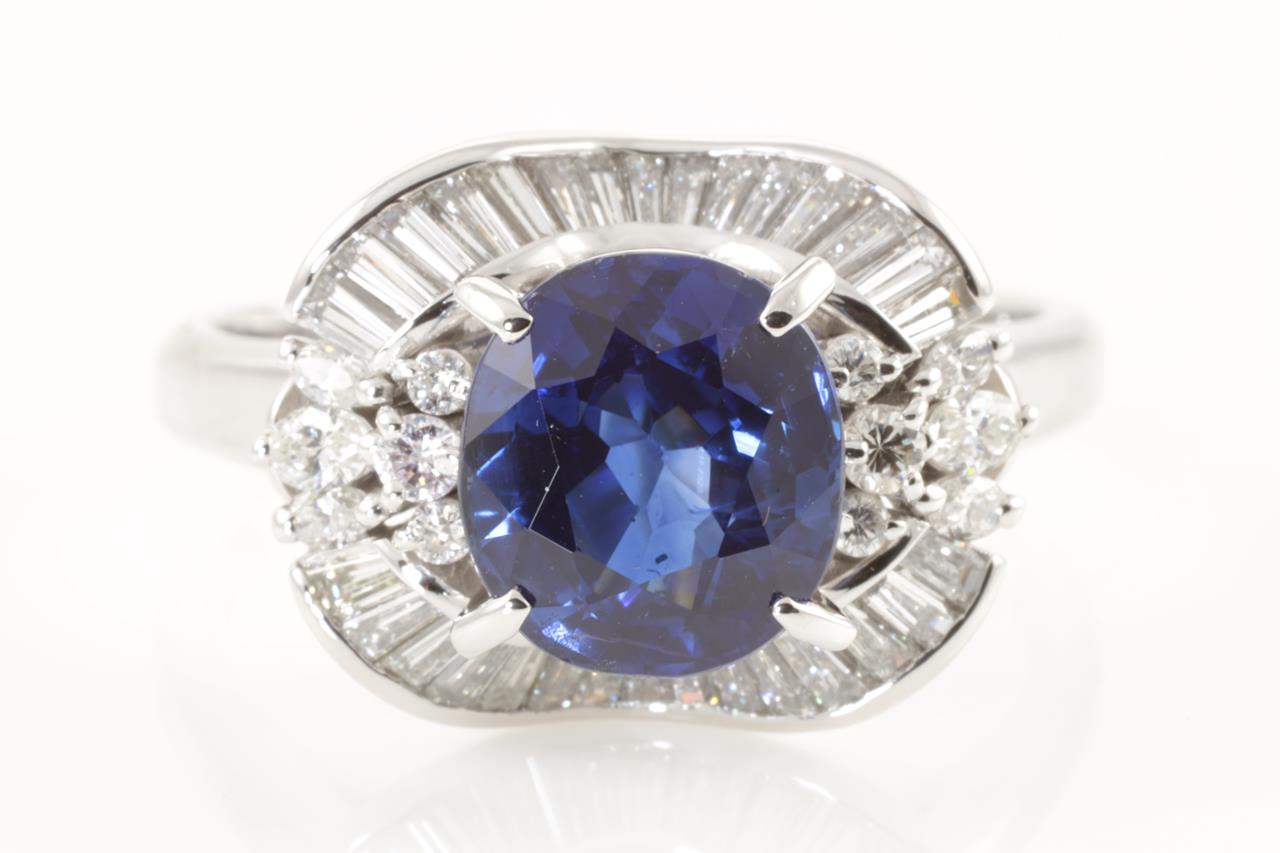 Royal Blue Sri Lankan Sapphire & Diamond Ring