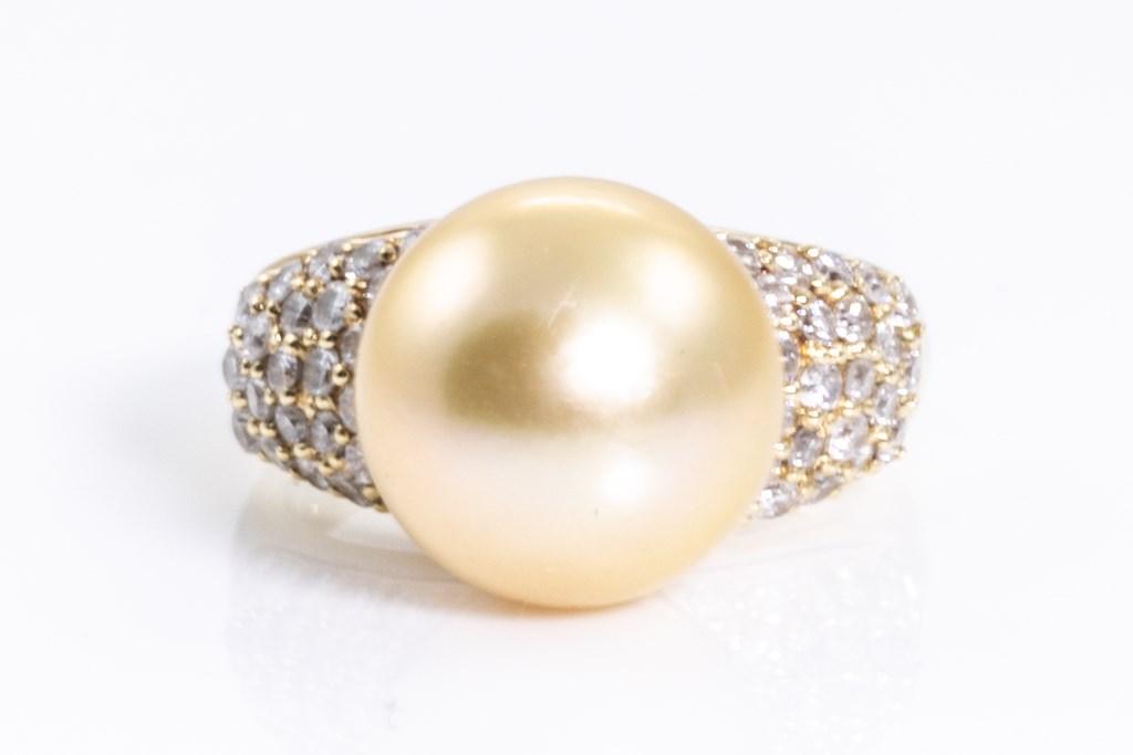 Golden South Sea Pearl and Diamond Ring