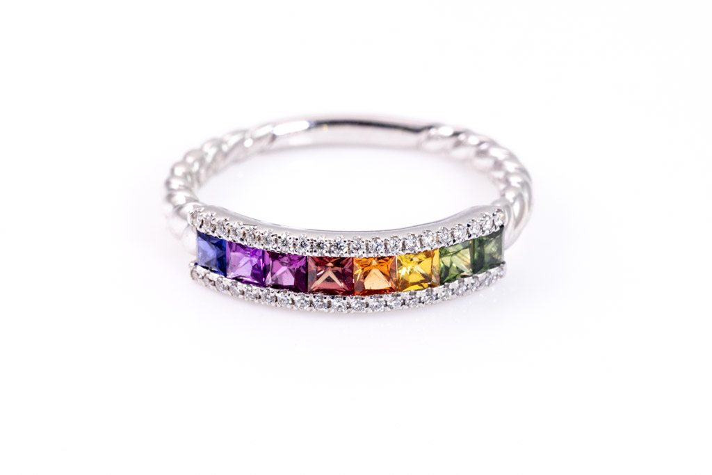 0.75ct Multi-Colour Sapphire and Diamond Ring