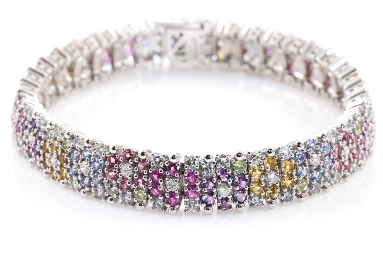Aquamarine, Ruby, Sapphire & Diamond Bracelet