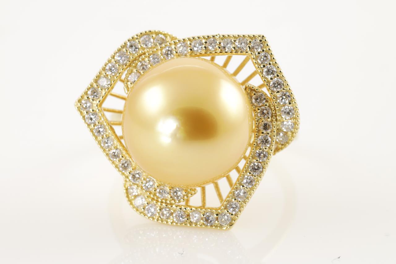 Golden South Sea Pearl and Diamond Ring