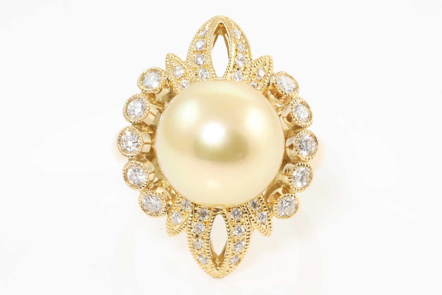 Golden Pearl and Diamond Ring