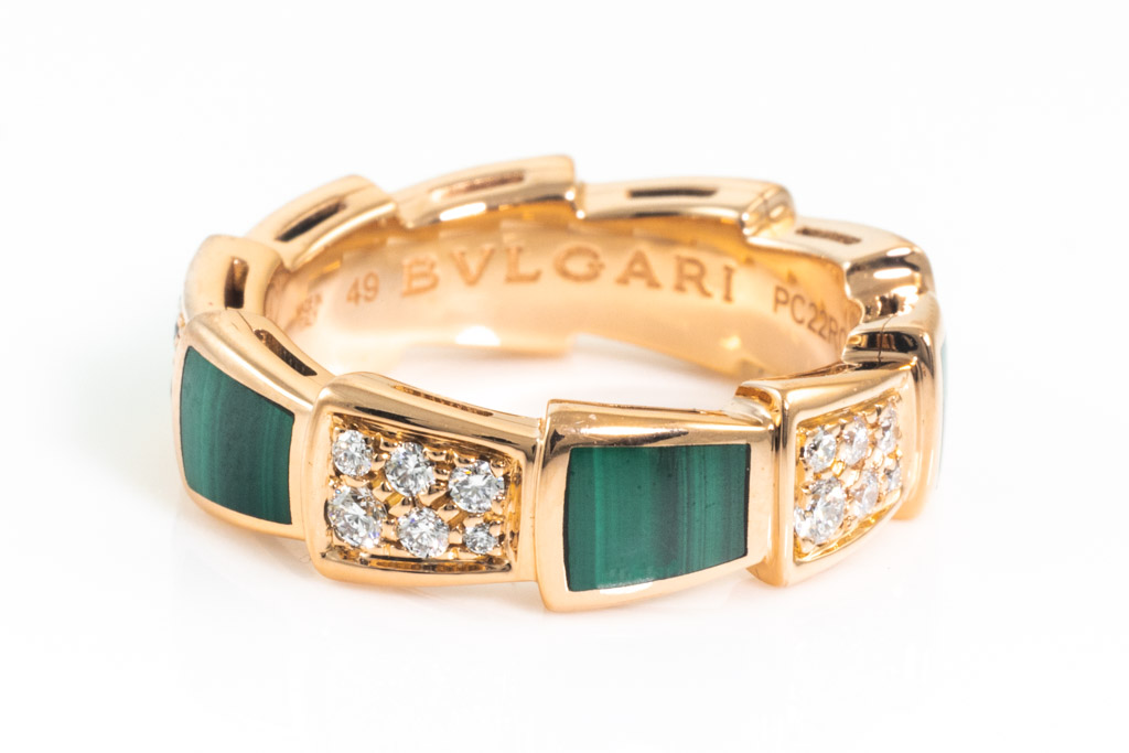Bvlgari Serpenti Viper with Malachite and Diamond Ring
