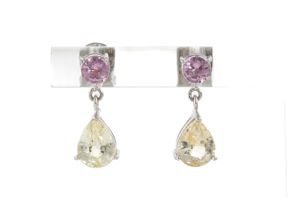 Unheated Ceylon Yellow and Pink Sapphire Earrings