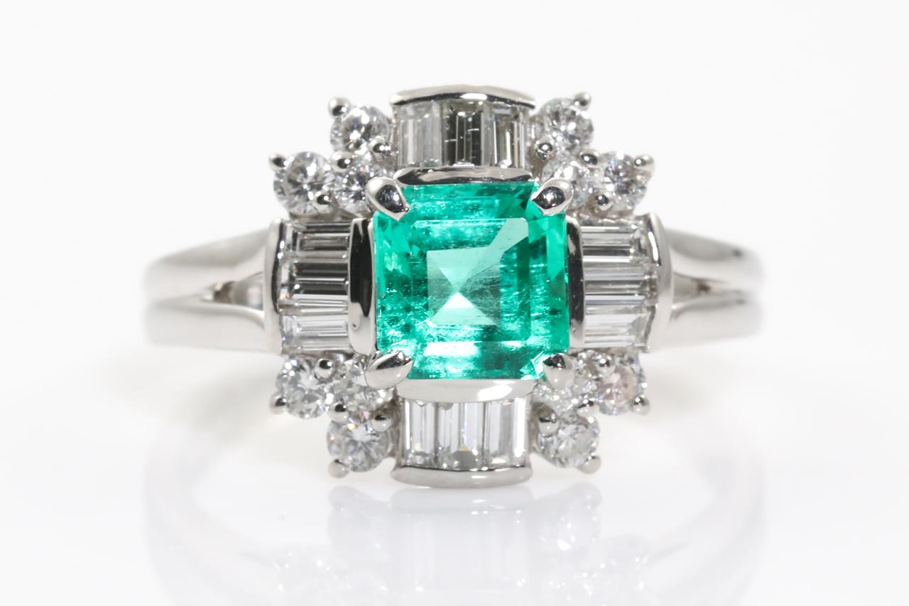 0.74ct Emerald and Diamond Ring