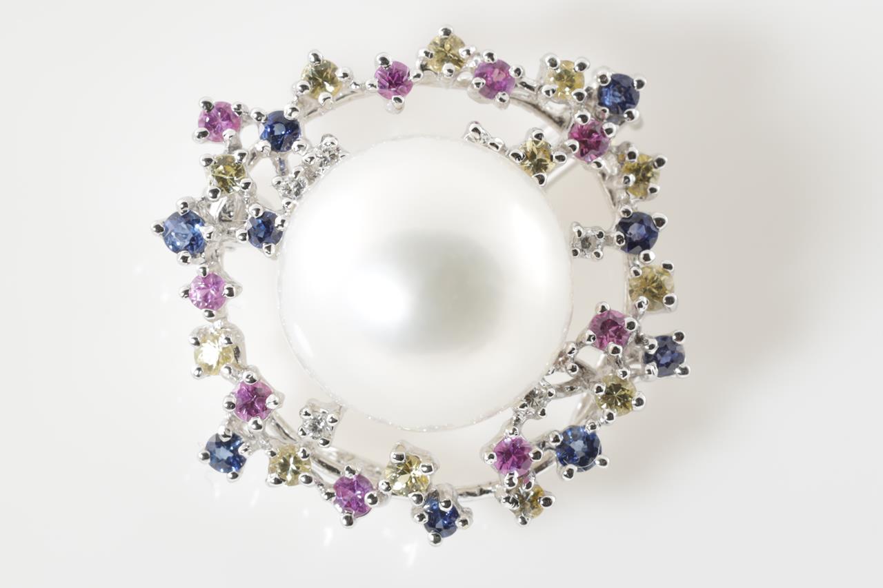 Pearl, Sapphire and Diamond Brooch/ Pendant