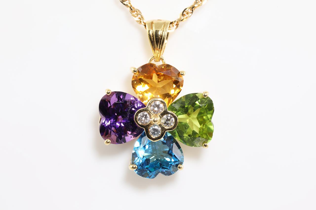 Mixed Gemstone and Diamond Pendant