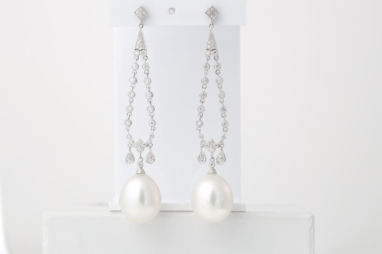 Chandelier Style Pearl and Diamond Earrings