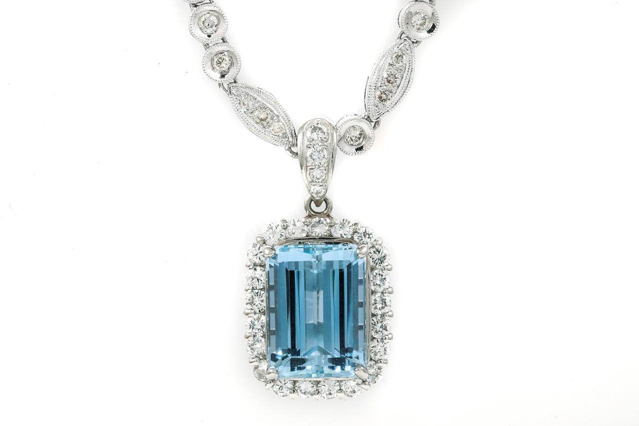 7.92ct Aquamarine & Diamond Necklace