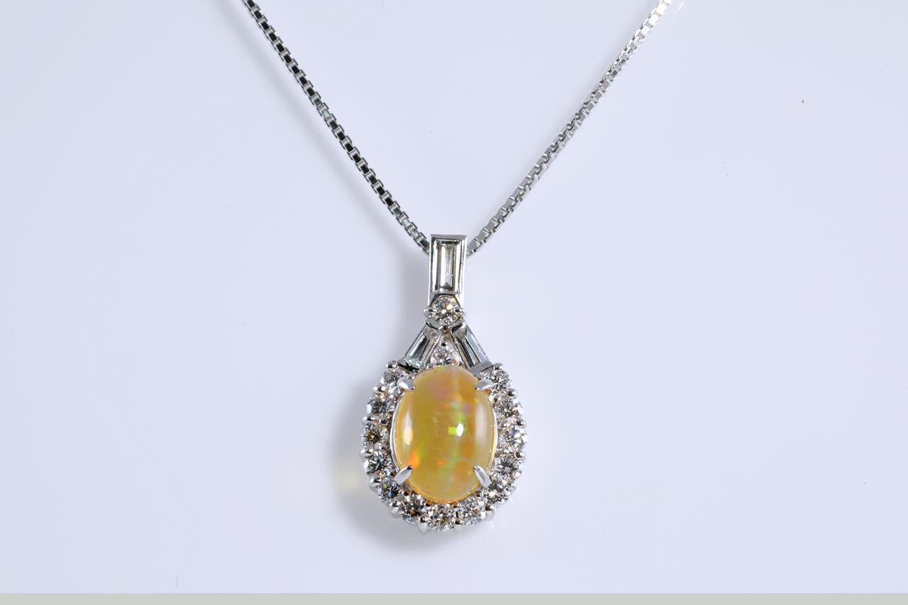 1.81ct Fire Opal and Diamond Pendant
