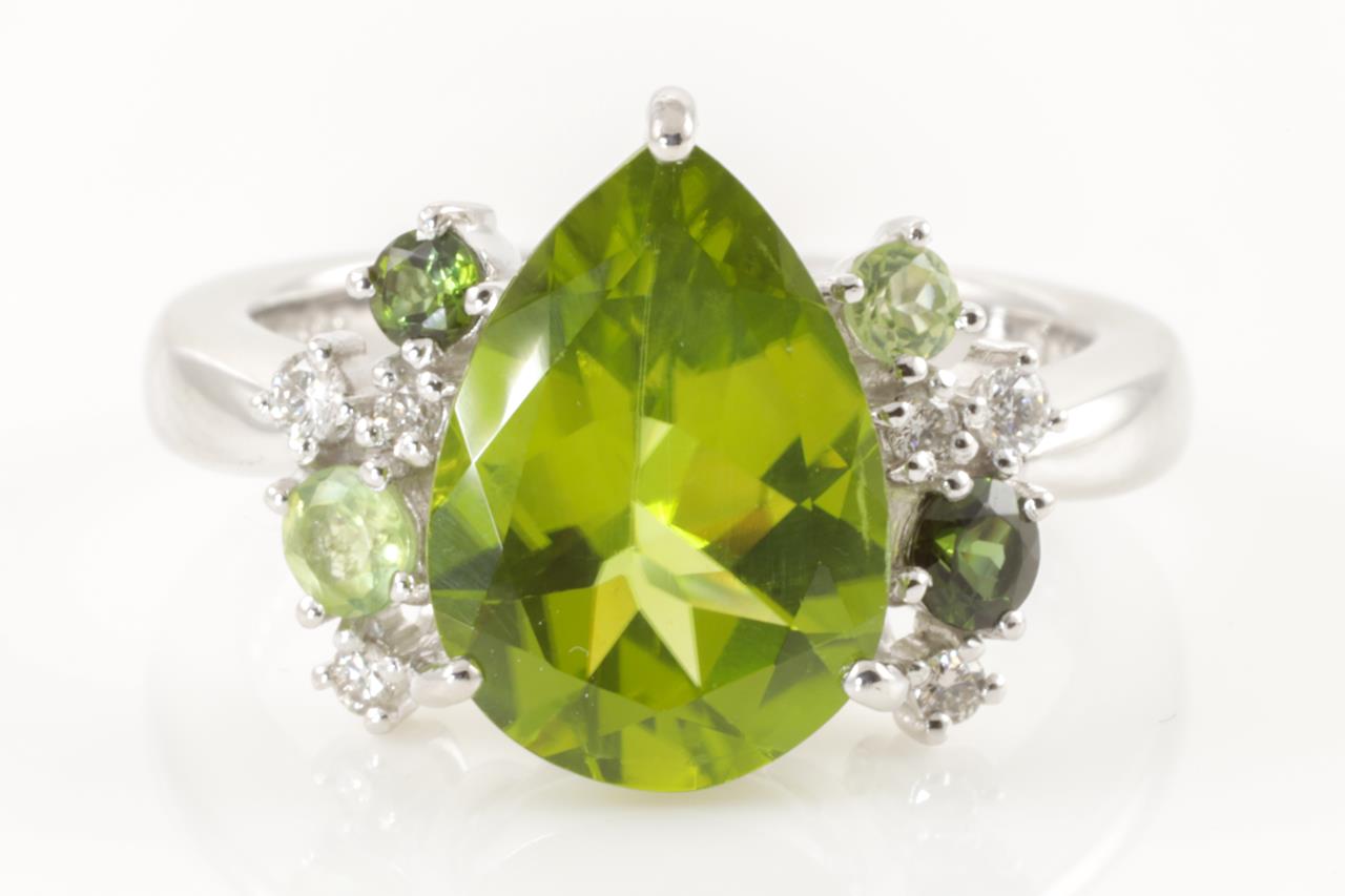 Peridot, Tourmaline and Diamond Ring