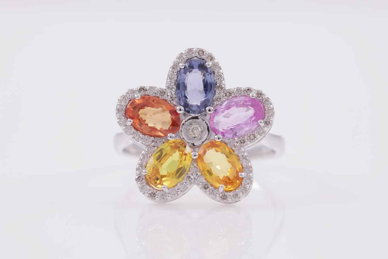 Multi Colour Sapphire & Diamond Ring