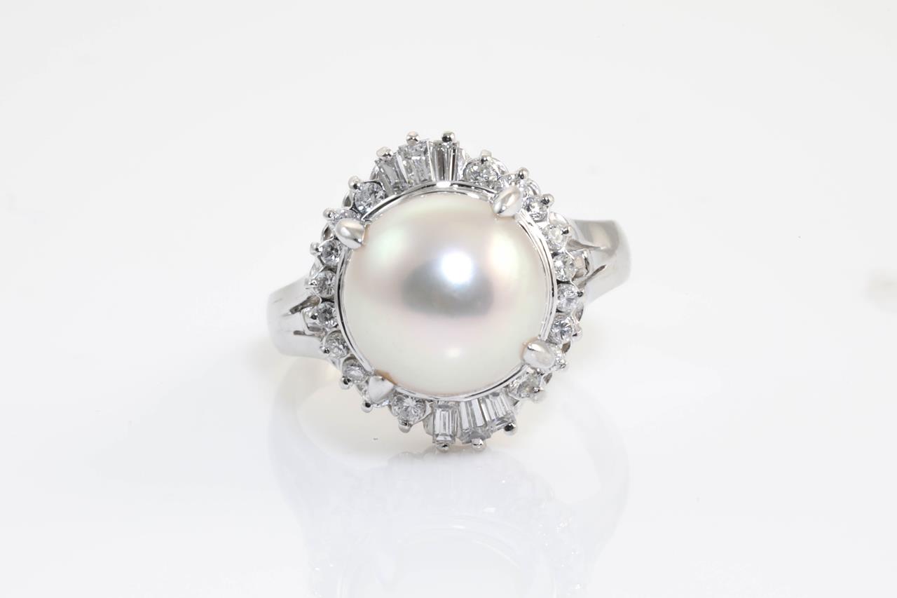 Akoya Pearl and Diamond Ring