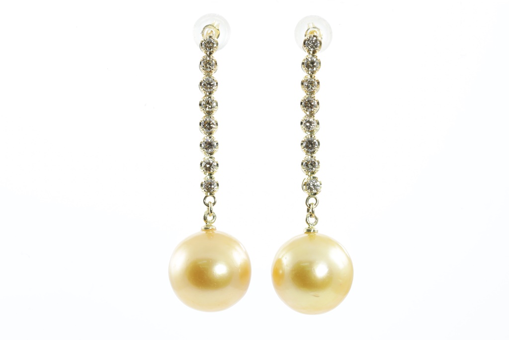 Golden South Sea Pearl and Diamond Earrings