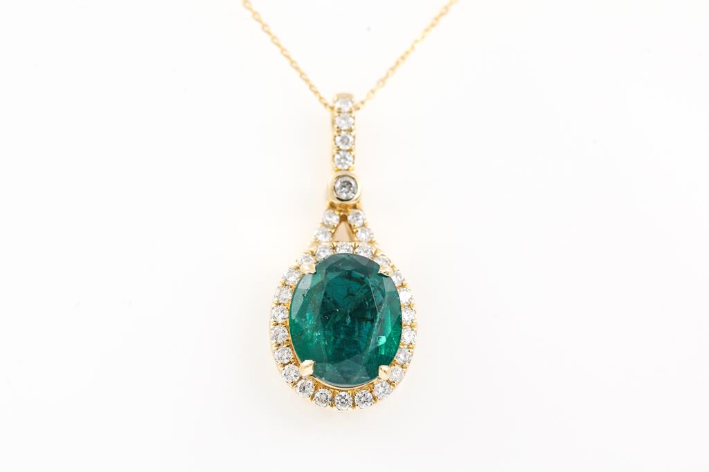 2.94ct Emerald and Diamond Pendant