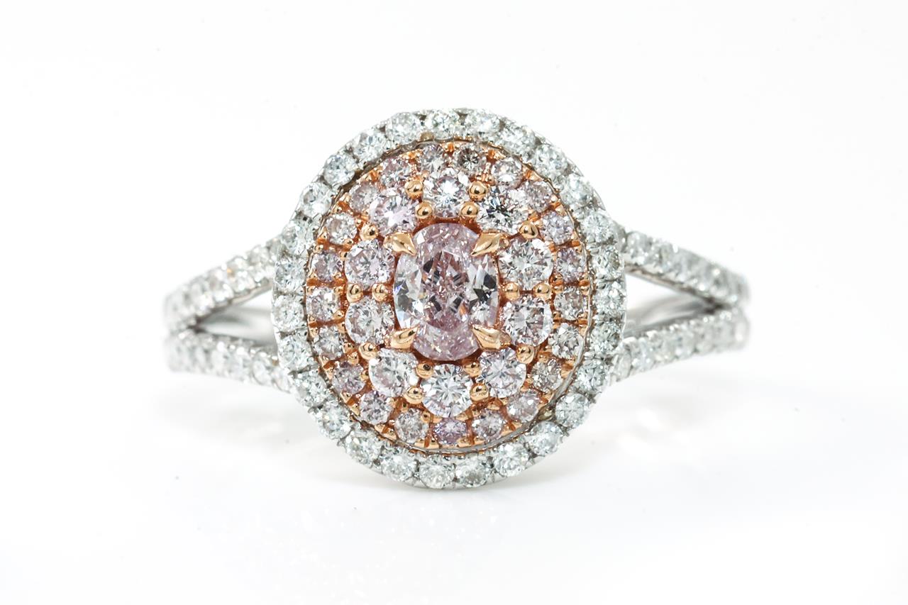 Pink and White Diamond Halo Ring
