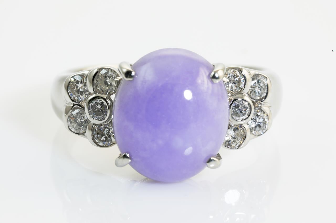 5.80ct Lavender Jade and Diamond Ring