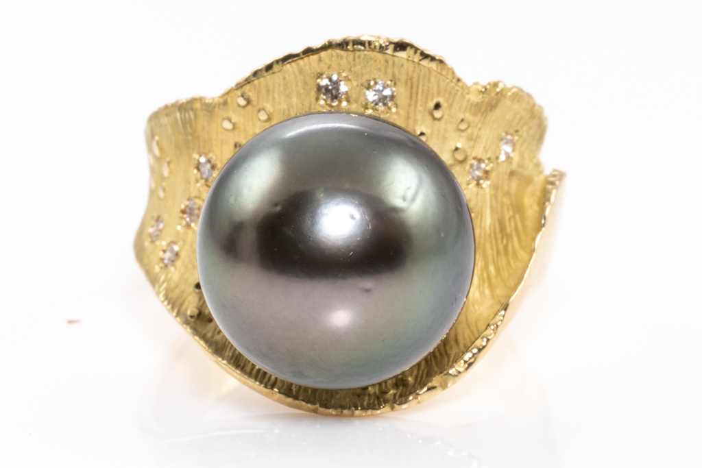 14mm Tahitian Pearl & Diamond Ring