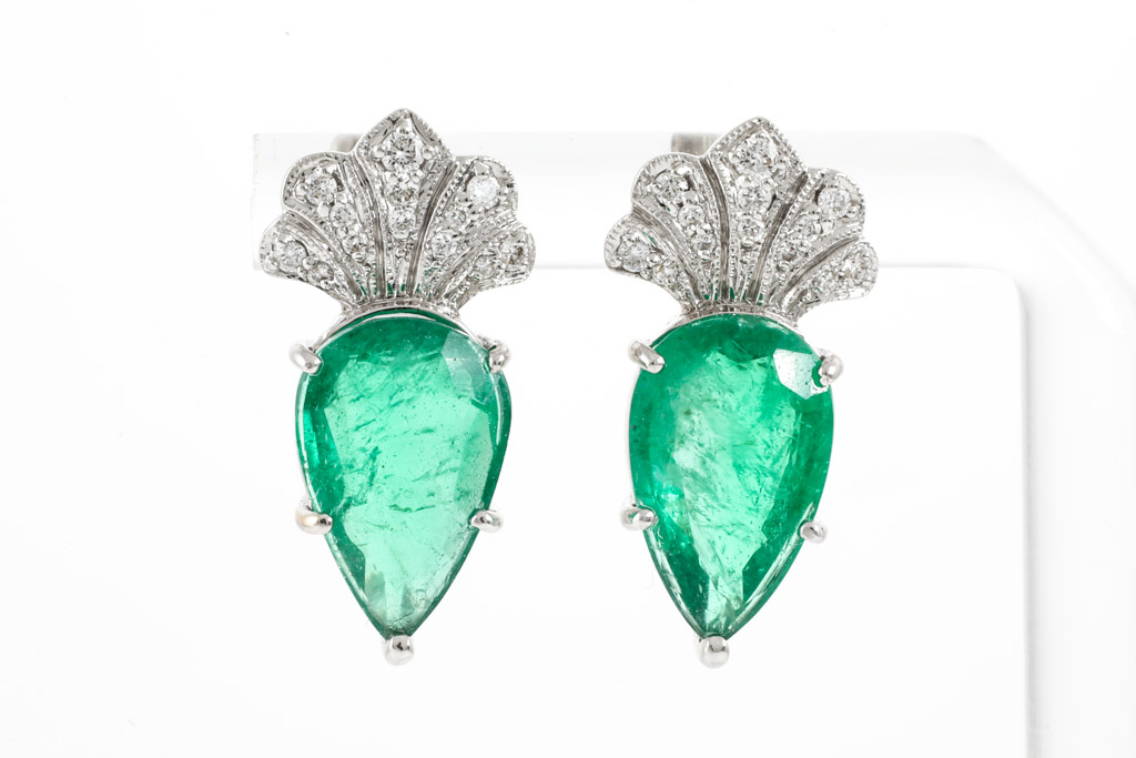7.69ct Zambian Emerald & Diamond Earrings