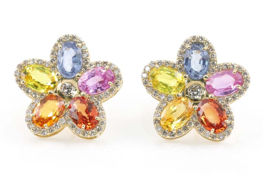 Multi-Colour Sapphire & Diamond Earrings