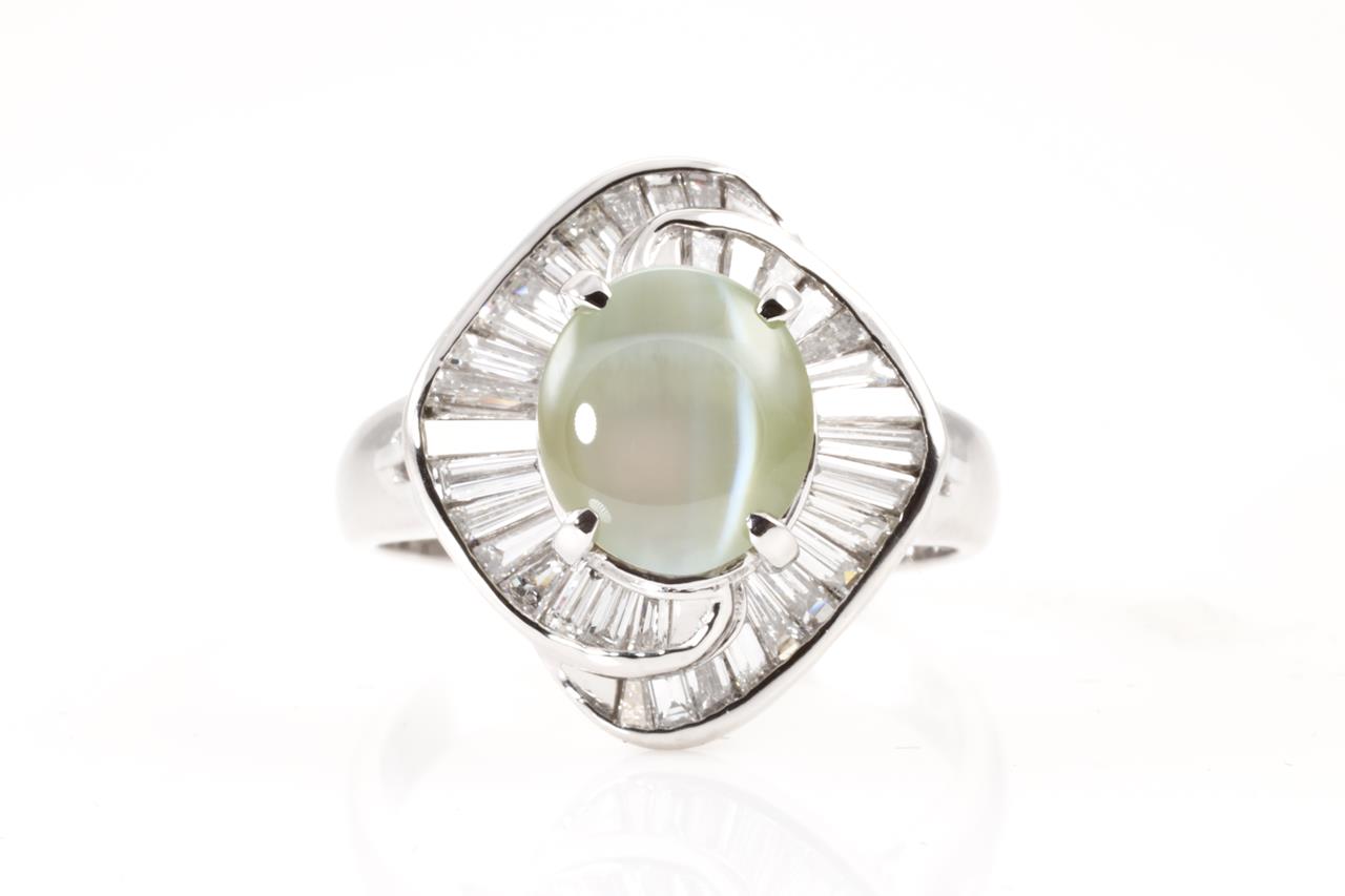 Chrysoberyl Cat's Eye and Diamond Ring