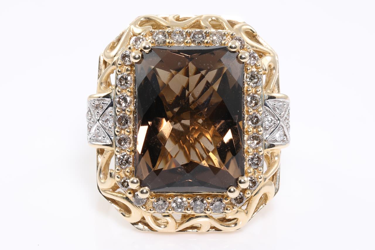 10.45ct Smokey Quartz and Diamond Ring