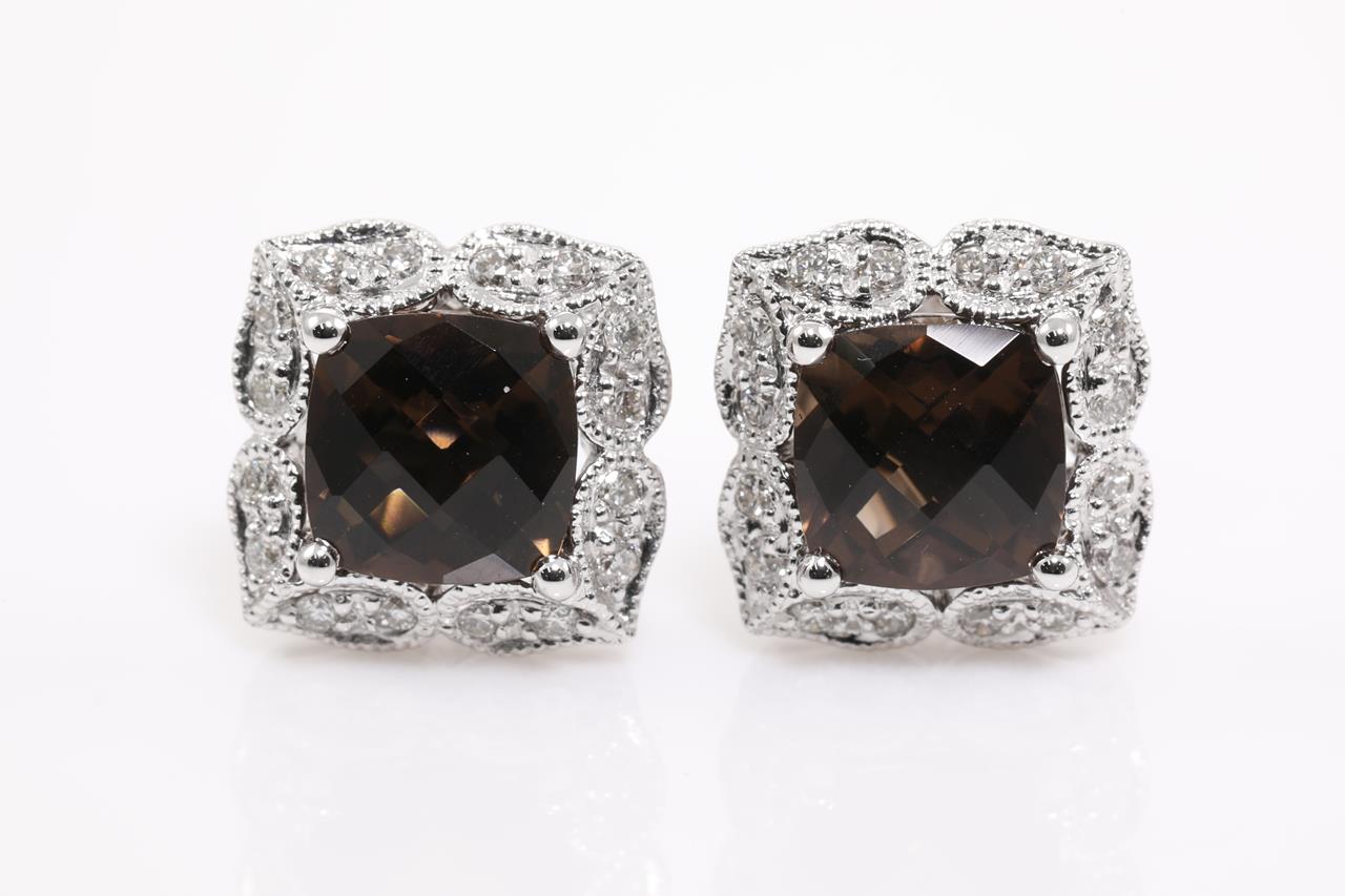 Smokey Quartz and Diamond Earrings