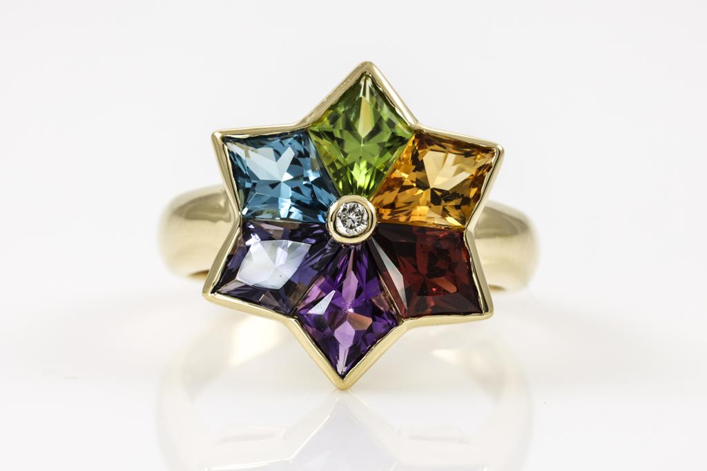 Mixed Gemstone and Diamond Ring
