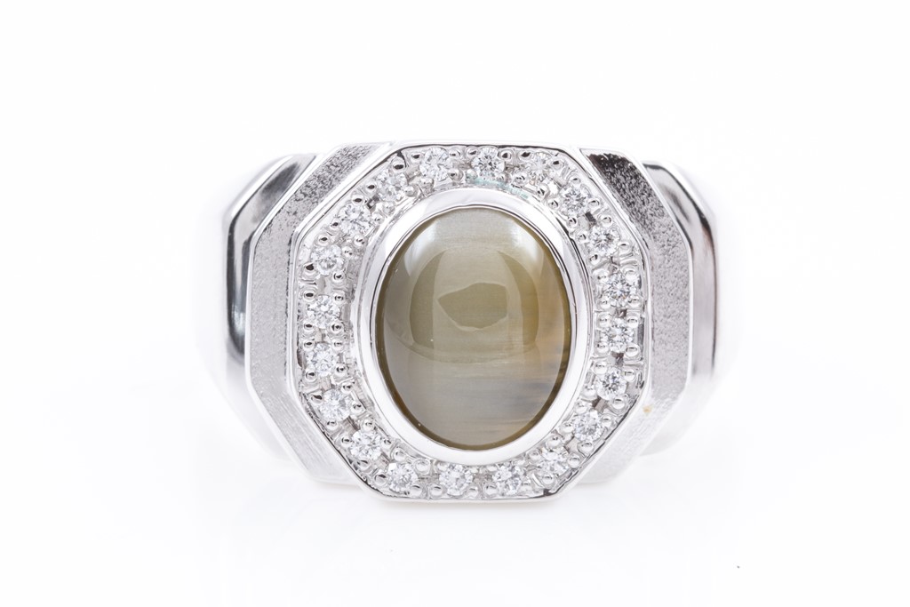 Chrysoberyl Cats Eye and Diamond Ring