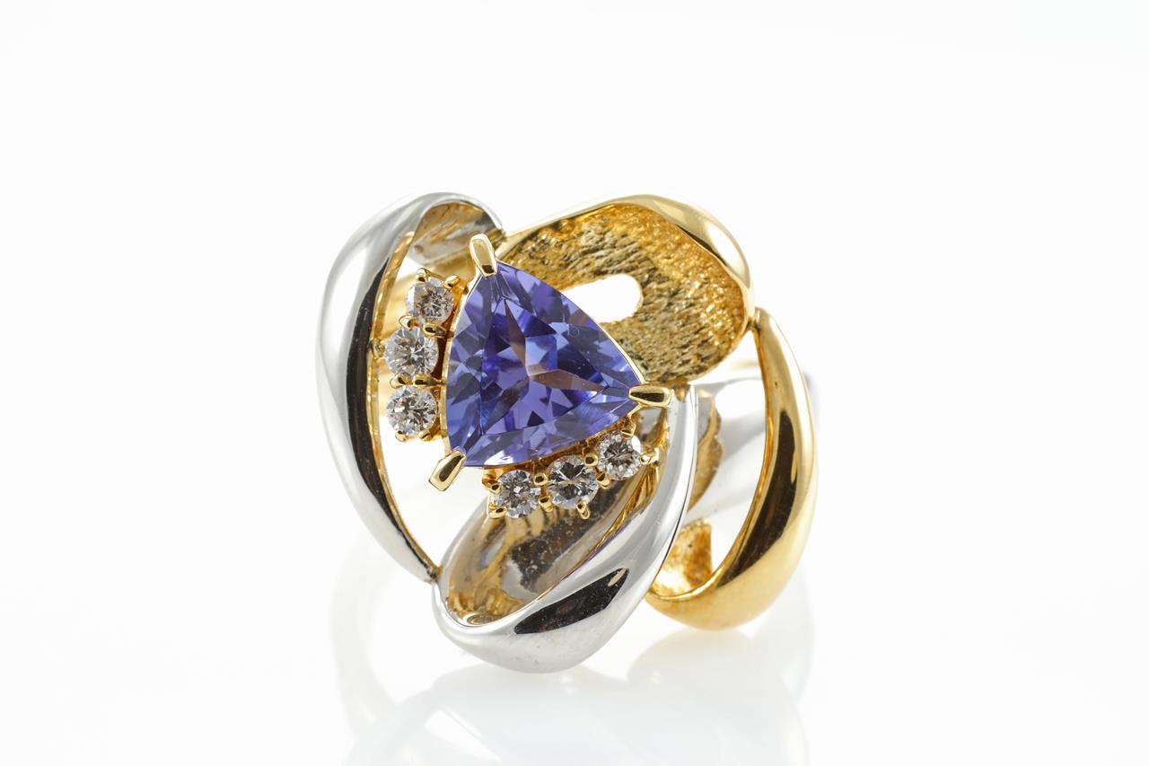 Trilliant Cut Tanzanite and Diamond Ring