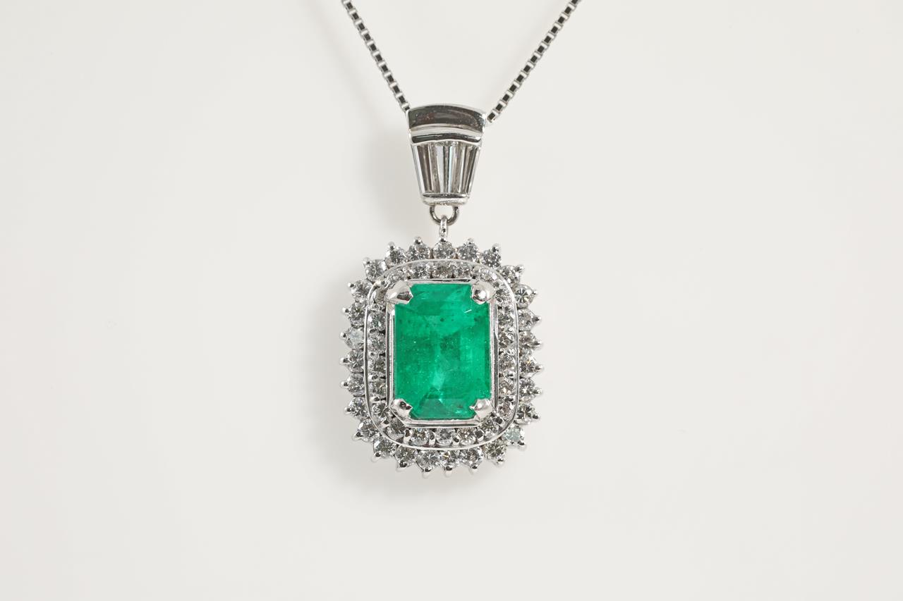 1.89ct Emerald and Diamond Pendant