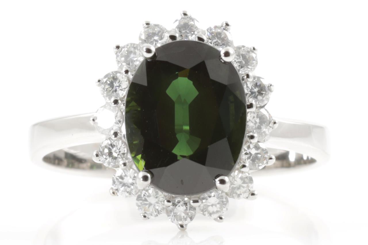 Green Sapphire and Diamond Ring